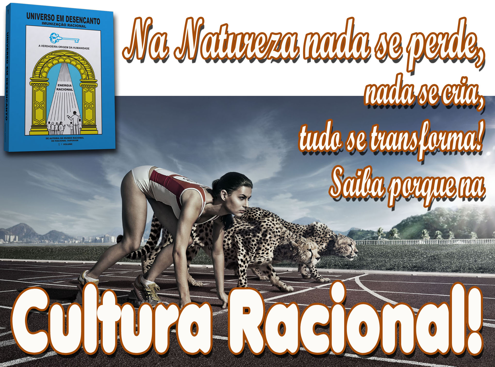 Cumprimos uma missão RACIONAL e dever humano de fraternidade de avisar nossos irmãos semelhantes da URGÊNCIA do estudo destes Livros de Cultura Racional, Universo em Desencanto, para que as pessoas, de posse deste conhecimento cultural Racional, possam contar com a proteção dos TRÊS PODERES nas hecatombes que, inevitavelmente irão acontecer, para liquidar todos aqueles e aquelas que, por já estarem irremediavelmente comprometidos com a matéria e a ela TOTALMENTE ligados, não terão mais o privilégio de continuar na Terra como seres humanos, porque terão que resgatar essa dívida de opção pela matéria nas classes inferiores de animais irracionais.
